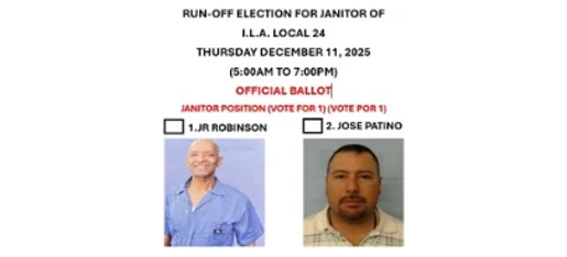 RUN-OFF ELECTION OF A NEW JANITOR FOR I.L.A. LOCAL 24 WILL BE 12/11/2025