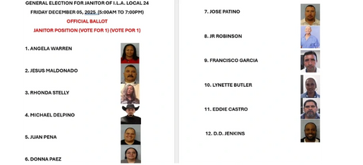 ELECTION OF A NEW JANITOR FOR I.L.A. LOCAL 24 WILL BE 12/5/2025
